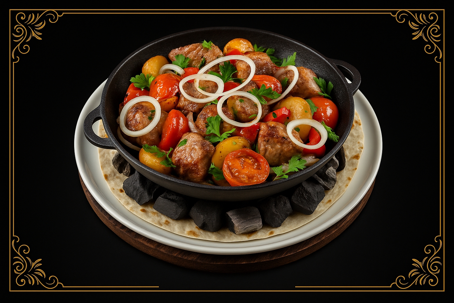 Джыз-быз из свинины — сытное и ароматное блюдо восточной кухни. Нежные кусочки свинины обжариваются до румяной корочки, затем тушатся с картофелем, луком и ароматными специями. Такое сочетание делает блюдо пряным, насыщенным и по-домашнему вкусным.