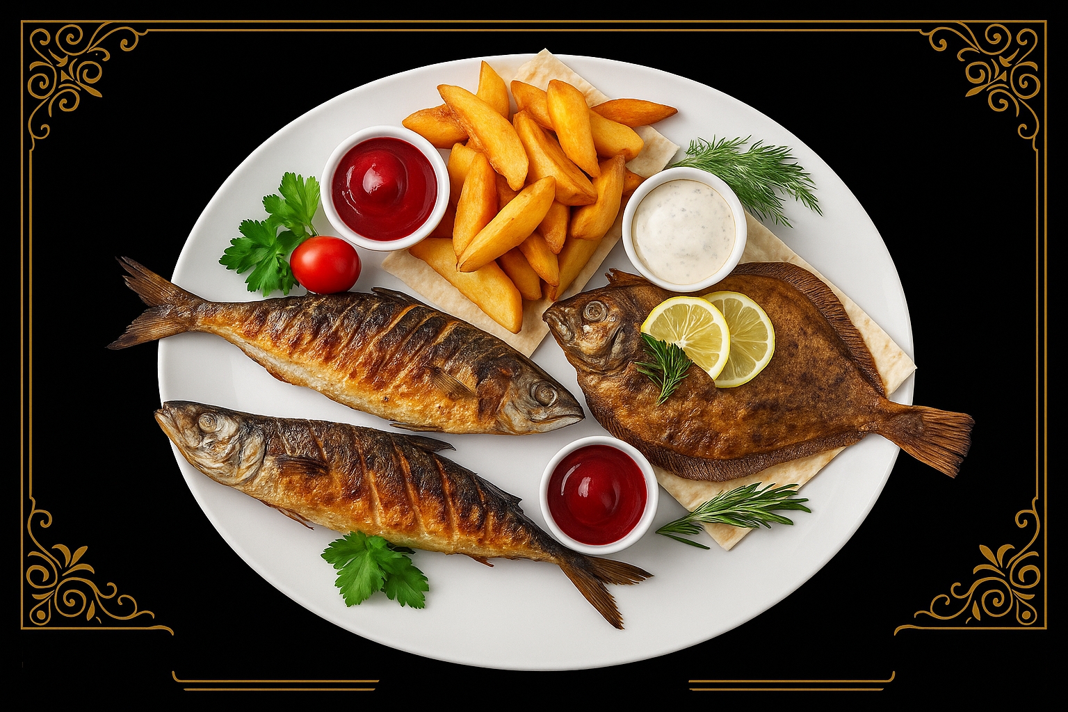 Набор «Золотая рыбка» — изысканный сет для ценителей блюд из рыбы, приготовленных на углях. В его составе: терпуг, скумбрия и камбала, запечённые до золотистой корочки, а также картофель по-деревенски. Дополняют набор ароматный гранатовый соус и свежий лаваш. Такой сет станет отличным выбором для семейного ужина или праздничного стола.