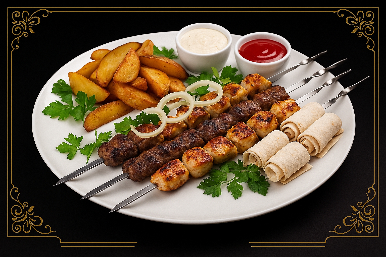 Сет «Халяль М» — это идеальный выбор для ценителей мясных блюд, приготовленных на углях. В набор входят две порции шашлыка из баранины, две порции куриного шашлыка и две порции ароматного картофеля, запечённого на углях. Дополняют сет четыре порции фирменного шашлычного соуса и один свежий лаваш собственного приготовления. Такой набор подойдёт как для семьи, так и для дружеской компании.