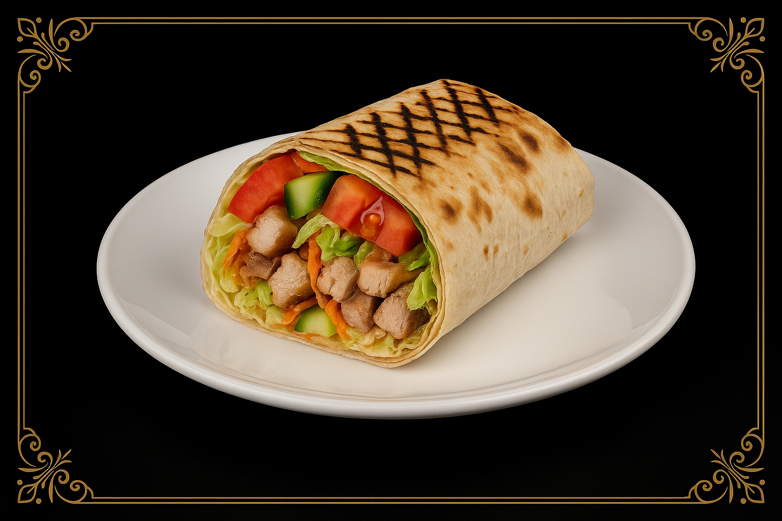 Шаурма на углях со свининой — сытное и ароматное блюдо, приготовленное по фирменному рецепту. В тонкий лаваш заворачивается рубленый свиной шашлык, свежие огурцы, томаты и хрустящая пекинская капуста. Начинка заправляется соусом «Цезарь» и оригинальным томатным кетчупом, после чего шаурма запекается на углях, приобретая аппетитный аромат дымка и золотистую корочку.